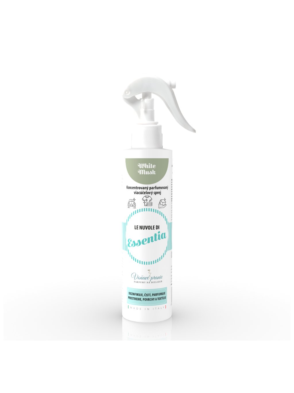 Koncentrovaný parfumovaný viacúčelový sprej s prírodnými esenciami a špeciálnym zložením s kvartérnymi soľami pre hygienické čistenie. Čistí a prevonia akýkoľvek priestor, povrchy a textílie vo vašom domove či aute. Odstraňuje nepríjemné pachy a šíri elegantnú vôňu.