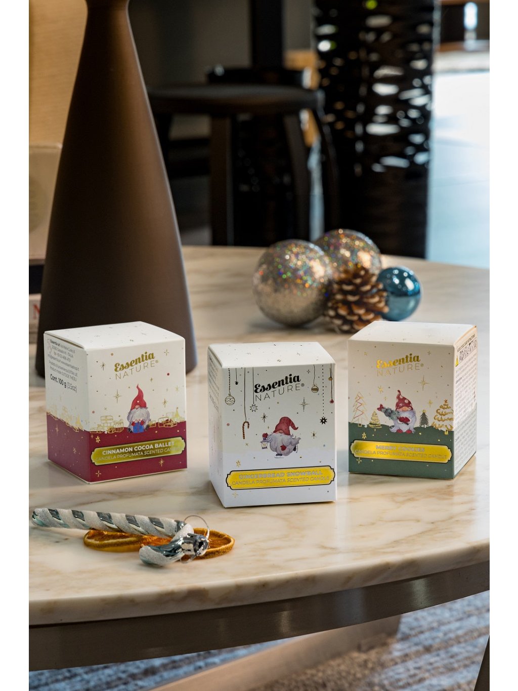 Vonná sviečka Gli Elfi di Essentia – Cinnamon Cocoa Ballet z limitovanej vianočnej kolekcie v elegantnom skle. Sladké perníkové korenie v spojení s bohatým kakaom – vôňa, ktorá evokuje domáce pečenie, zimné večery pri krbe a sviatočnú pohodu. Vyrobená zo 100 % rastlinného sójového vosku, ručne odlievaná, s prírodným bavlneným knôtom. Formát: 100 g – horí až 20 hodín.
