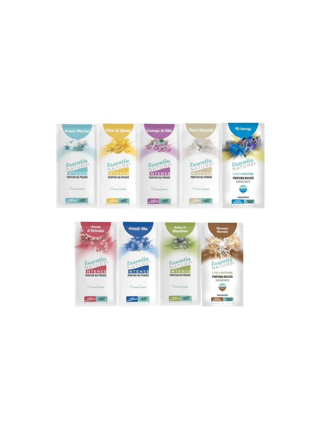Skúšobná sada vzoriek olejových parfémov na pranie Essentia - INTENSE 9 x 20 ml